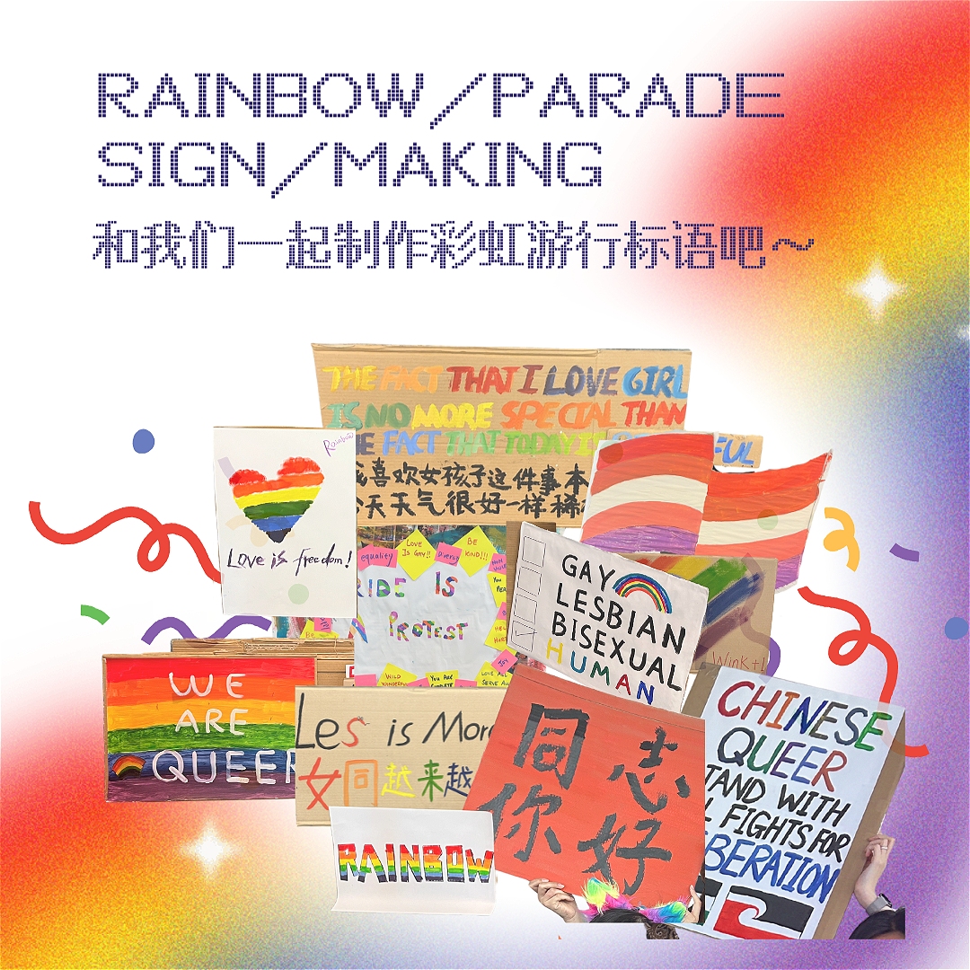 Are you keen to walk with Chinese Pride New Zealand in the upcoming Rainbow Parade on 21 Feb? This is a banner/sign making session for anyone who is interested in making your own signs for the day. Materials will be provided but you are more than welcome to bring your own.|新西兰华人彩虹联盟Chinese Pride New Zealand会在二月参加Rainbow Parade彩虹游行的队伍。如果你有兴趣加入我们一起游行,并想带上自己的标语牌,我们邀请你来一起画标语~ 我们会准备材料,也欢迎你带上自己想用的物品。