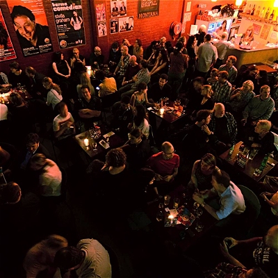 The main venue room can accommodate 100 people in comfortable cabaret-style seating, adjacent to a separate bar which is open from 7pm till late.