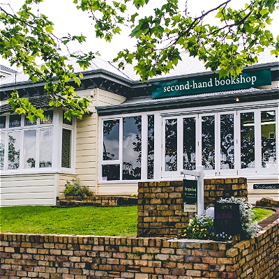 The Open Book is a quaint villa-turned-bookshop. Seven rooms full of books, with cozy armchairs and a garden with tables and chairs under cover and a few trees. To get up from the street into The Open Book, there is a step, leading up a winding ramp, then three steps up into the shop itself. There is a slight split-level in the shop, with a small step to get into three of the rooms.
